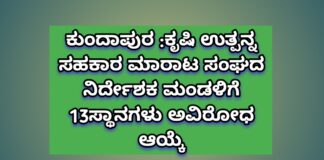 ಕುಂದಾಪುರ :ಕೃಷಿ ಉತ್ಪನ್ನ ಸಹಕಾರ ಮಾರಾಟ ಸಂಘದ ನಿರ್ದೇಶಕ ಮಂಡಳಿಗೆ 13ಸ್ಥಾನಗಳು ಅವಿರೋಧ ಆಯ್ಕೆ