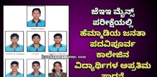 ಹೆಮ್ಮಾಡಿ :ಜೆಇಇ ಮೈನ್ಸ್ ಪರೀಕ್ಷೆಯಲ್ಲಿ ಹೆಮ್ಮಾಡಿಯ ಜನತಾ ಪದವಿಪೂರ್ವ ಕಾಲೇಜಿನ ವಿದ್ಯಾರ್ಥಿಗಳ ಅಪ್ರತಿಮ ಸಾಧನೆ