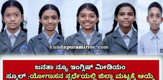 ಜನತಾ ನ್ಯೂ ಇಂಗ್ಲಿಷ್ ಮೀಡಿಯಂ ಸ್ಕೂಲ್ :ಯೋಗಾಸನ ಸ್ಪರ್ಧೆಯಲ್ಲಿ ವಲಯ ಮಟ್ಟದ ಚಾಂಪಿಯನ್ಸ್ ಆಗಿ ಜಿಲ್ಲಾ ಮಟ್ಟಕ್ಕೆ ಆಯ್ಕೆ