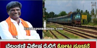 ಕುಂದಾಪುರ :ವೆಲಂಕಣಿ ವಿಶೇಷ ರೈಲಿಗೆ ಕೋಟ ಸೂಚನೆ