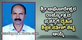 ಕಾರ್ತಟ್ಟು- ಶ್ರೀ ಅಘೋರೇಶ್ವರ ರಾಜ್ಯೋತ್ಸವ ಪ್ರಶಸ್ತಿಗೆ ದೈಹಿಕ ಶಿಕ್ಷಕ ಸತೀಶ್ ಶೆಟ್ಟಿ ಆಯ್ಕೆ
