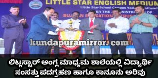 ಕುಂದಾಪುರ :ಲಿಟ್ಲಸ್ಟಾರ್ ಆಂಗ್ಲ ಮಾಧ್ಯಮ ಶಾಲೆಯಲ್ಲಿ ವಿದ್ಯಾರ್ಥಿ ಸಂಸತ್ತು ಪದಗ್ರಹಣ ಹಾಗೂ ಕಾನೂನು ಅರಿವು ಮಾಹಿತಿ ಕಾರ್ಯಕ್ರಮ
