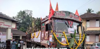 ಅಯೋಧ್ಯಾ ಬ್ರಹ್ಮರಥ ನಿರ್ಮಾಣದ ಮರದ ಬೊಡ್ಡೆಗಳು ಕೋಟೇಶ್ವರಕ್ಕೆ ಆಗಮನ