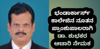 ಕುಂದಾಪುರ :ಭಂಡಾರ್ಕಾರ್ಸ್ ಕಾಲೇಜಿನ ನೂತನ ಪ್ರಾಂಶುಪಾಲರಾಗಿ ಡಾ. ಶುಭಕರ ಆಚಾರಿ ನೇಮಕ
