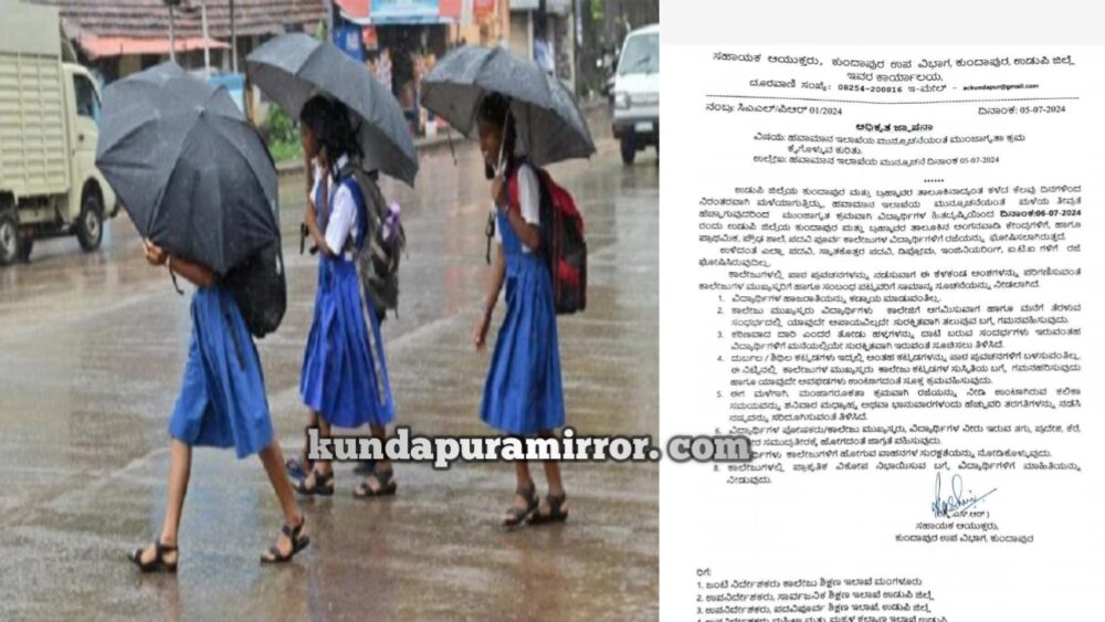 ನಾಳೆ ಕುಂದಾಪುರ ಮತ್ತು ಬ್ರಹ್ಮಾವರ ತಾಲೂಕಿನ ಶಾಲಾ ಪಿ.ಯು ಕಾಲೇಜುಗಳಿಗೆ ರಜೆ ಘೋಷಣೆ