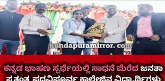 ಕುಂದಾಪುರ :ಕನ್ನಡ ಭಾಷಣ ಸ್ಪರ್ಧೆಯಲ್ಲಿ ಸಾಧನೆ ಮೆರೆದ ಜನತಾ ಸ್ವತಂತ್ರ ಪದವಿಪೂರ್ವ ಕಾಲೇಜಿನ ವಿದ್ಯಾರ್ಥಿಗಳು