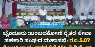 ಬೈಂದೂರು :ಖಂಬದಕೋಣೆ ರೈತರ ಸೇವಾ ಸಹಕಾರಿ ಸಂಘದ ಮಹಾಸಭೆ: ರೂ.5.07 ಕೋಟಿ ಲಾಭ, ಸದಸ್ಯರಿಗೆ 15% ಡಿವಿಡೆಂಡ್