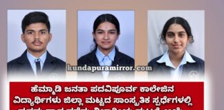 ಹೆಮ್ಮಾಡಿ ಜನತಾ ಪದವಿಪೂರ್ವ ಕಾಲೇಜಿನ ವಿದ್ಯಾರ್ಥಿಗಳು ಜಿಲ್ಲಾ ಮಟ್ಟದ ಸಾಂಸ್ಕ್ರತಿಕ ಸ್ಪರ್ಧೆಗಳಲ್ಲಿ ಪ್ರಥಮ ಸ್ಥಾನ ಪಡೆದು ವಿಭಾಗೀಯ ಮಟ್ಟಕ್ಕೆ ಆಯ್ಕೆ.