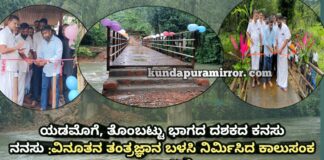 ಕುಂದಾಪುರ :ಯಡಮೊಗೆ, ತೊಂಬಟ್ಟು ಭಾಗದ ದಶಕದ ಕನಸು ನನಸು :ವಿನೂತನ ತಂತ್ರಜ್ಞಾನ ಬಳಸಿ ನಿರ್ಮಿಸಿದ ಕಾಲುಸಂಕ ಉದ್ಘಾಟನೆ