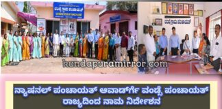 ನ್ಯಾಷನಲ್ ಪಂಚಾಯತ್ ಆವಾರ್ಡ್ಗೆ ವಂಡ್ಸೆ ಪಂಚಾಯತ್ ರಾಜ್ಯದಿಂದ ನಾಮ ನಿರ್ದೇಶನ