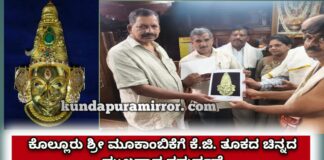 ಕುಂದಾಪುರ: ಕೊಲ್ಲೂರು ಶ್ರೀ ಮೂಕಾಂಬಿಕೆಗೆ ಕೆ.ಜಿ. ತೂಕದ ಚಿನ್ನದ ಮುಖವಾಡ ಸಮರ್ಪಣೆ
