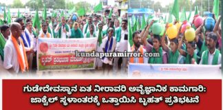 ಗುಡೇದೇವಸ್ಥಾನ ಏತ ನೀರಾವರಿ ಅವೈಜ್ಞಾನಿಕ ಕಾಮಗಾರಿ: ಜಾಕ್ವೆಲ್ ಸ್ಥಳಾಂತರಕ್ಕೆ ಒತ್ತಾಯಿಸಿ ಬೃಹತ್ ಪ್ರತಿಭಟನೆ – ಗುತ್ತಿಗೆದಾರರೊಂದಿಗೆ ಅಧಿಕಾರಿಗಳು ಶಾಮೀಲು –...