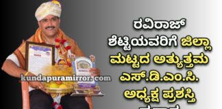 ಚಿತ್ತೂರು :ರವಿರಾಜ್ ಶೆಟ್ಟಿಯವರಿಗೆ ಜಿಲ್ಲಾ ಮಟ್ಟದ ಅತ್ಯುತ್ತಮ ಎಸ್.ಡಿ.ಎಂ.ಸಿ. ಅಧ್ಯಕ್ಷ ಪ್ರಶಸ್ತಿ ಪ್ರದಾನ