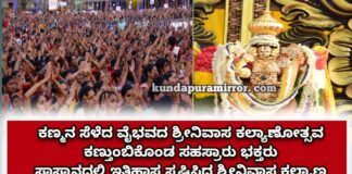 ಕಣ್ಮನ ಸೆಳೆದ ವೈಭವದ ಶ್ರೀನಿವಾಸ ಕಲ್ಯಾಣೋತ್ಸವ ಕಣ್ತುಂಬಿಕೊಂಡ ಸಹಸ್ರಾರು ಭಕ್ತರು ಸಾಸ್ತಾನದಲ್ಲಿ ಇತಿಹಾಸ ಸೃಷ್ಠಿಸಿದ ಶ್ರೀನಿವಾಸ ಕಲ್ಯಾಣ