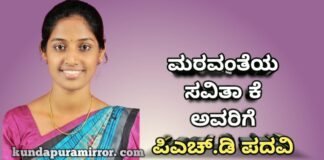 ಮರವಂತೆಯ ಸವಿತಾ ಕೆ ಅವರಿಗೆ ಪಿಎಚ್.ಡಿ ಪದವಿ