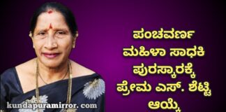 ಕೋಟ :ಪಂಚವರ್ಣ ಮಹಿಳಾ ಸಾಧಕಿ ಪುರಸ್ಕಾರಕ್ಕೆ ಪ್ರೇಮ ಎಸ್ ಶೆಟ್ಟಿ ಆಯ್ಕೆ