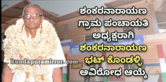 ಶಂಕರನಾರಾಯಣ ಗ್ರಾಮ ಪಂಚಾಯತಿ ಅಧ್ಯಕ್ಷರಾಗಿ ಶಂಕರನಾರಾಯಣ ಭಟ್ ಕೊಂಡಳ್ಳಿ ಅವಿರೋಧ ಆಯ್ಕೆ