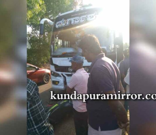 ಗುಲ್ವಾಡಿ :ಶೆಟ್ರಕಟ್ಟೆ ತಿರುವಿನ ಬಳಿ ಖಾಸಗಿ ಬಸ್ಸಿಗೆ ವೇಗವಾಗಿ ಬಂದ ಬೈಕ್ ಮುಖಾಮುಖಿ ಡಿಕ್ಕಿ -ಬೈಕ್ ಸವಾರ ಸಾವು