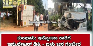 ಕುಂಭಾಸಿ: ಇನ್ನೋವಾ ಕಾರಿಗೆ ಇನ್ಸುಲೇಟರ್ ಡಿಕ್ಕಿ – ಏಳು ಜನ ಗಂಭೀರ