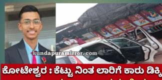 ಕೋಟೇಶ್ವರ :ಕೆಟ್ಟು ನಿಂತ ಲಾರಿಗೆ ಕಾರು ಡಿಕ್ಕಿ – ಒಬ್ಬ ಸಾವು, ನಾಲ್ಕು ಜನ ಗಂಭೀರ