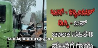ಕೋಟ :ಬಸ್ ಕ್ಯಾಂಟರ್ ಡಿಕ್ಕಿ- ಬಸ್ ಚಾಲಕ ಸಹಿತ 8 ಮಂದಿಗೆ ಗಾಯ