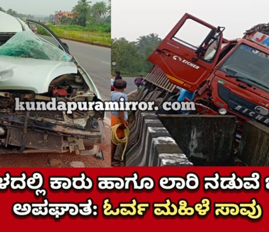 ಭಟ್ಕಳದಲ್ಲಿ ಕಾರು ಹಾಗೂ ಲಾರಿ ನಡುವೆ ಭೀಕರ ಅಪಘಾತ:ಓರ್ವ ಮಹಿಳೆ ಸಾವು