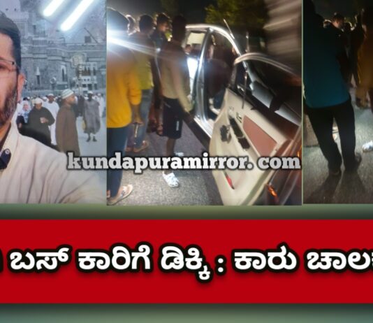 ತ್ರಾಸಿ :ಖಾಸಗಿ ಬಸ್ ಕಾರಿಗೆ ಡಿಕ್ಕಿ : ಕಾರು ಚಾಲಕ ಸಾವು