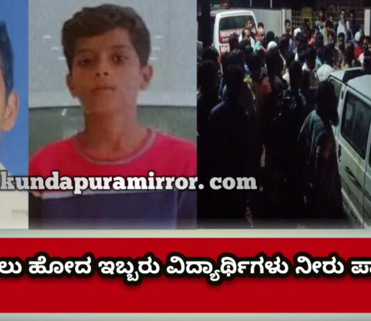 ಯಡ್ತರೆ: ಈಜಲು ಹೋದ ಇಬ್ಬರು ವಿದ್ಯಾರ್ಥಿಗಳು ನೀರು ಪಾಲು