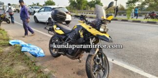 ಬೈಂದೂರು: ಸಿನೆಮಾ ಶೈಲಿಯಲ್ಲಿ ಬೈಕ್ ಸಮೇತ ಹೊಳೆಗೆ ಹಾರಿದ ಬೈಕ್ ಸವಾರ – ಅಪಾಯದಿಂದ ಪಾರು