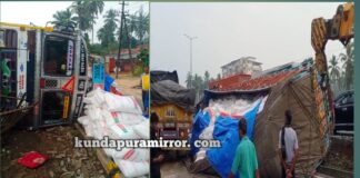 ಕುಂದಾಪುರ: ಪಾಲಿ ಪ್ರೊಫೈಲಿನ್ ಸಾಗಿಸುತ್ತಿದ್ದ ಲಾರಿ ಪಲ್ಟಿ – ತಪ್ಪಿದ ದುರಂತ