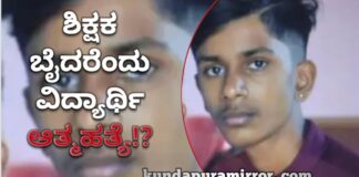 ಶಿರೂರು: ಶಿಕ್ಷಕ ಬೈದರೆಂದು ವಿದ್ಯಾರ್ಥಿ ಆತ್ಮಹತ್ಯೆ!?