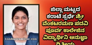 ಜಿಲ್ಲಾ ಮಟ್ಟದ ಕರಾಟೆ ಸ್ಪರ್ಧೆ :ಶ್ರೀ ವೆಂಕಟರಮಣ ಪದವಿ ಪೂರ್ವ ಕಾಲೇಜಿನ ವಿದ್ಯಾರ್ಥಿನಿ ಅನುಜ್ಞಾ ದ್ವಿತೀಯ