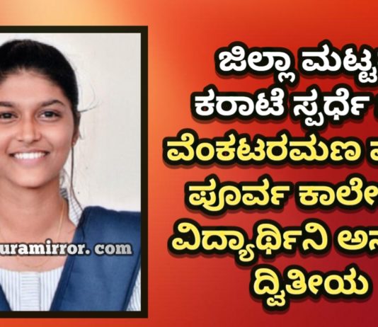 ಜಿಲ್ಲಾ ಮಟ್ಟದ ಕರಾಟೆ ಸ್ಪರ್ಧೆ :ಶ್ರೀ ವೆಂಕಟರಮಣ ಪದವಿ ಪೂರ್ವ ಕಾಲೇಜಿನ ವಿದ್ಯಾರ್ಥಿನಿ ಅನುಜ್ಞಾ ದ್ವಿತೀಯ