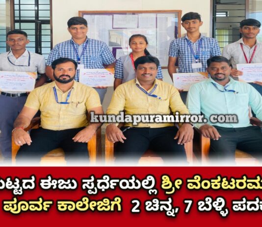 ಕುಂದಾಪುರ :ಜಿಲ್ಲಾ ಮಟ್ಟದ ಈಜು ಸ್ಪರ್ಧೆಯಲ್ಲಿ ಶ್ರೀ ವೆಂಕಟರಮಣ ಪದವಿ ಪೂರ್ವ ಕಾಲೇಜಿಗೆ 2 ಚಿನ್ನ, 7 ಬೆಳ್ಳಿ ಪದಕ