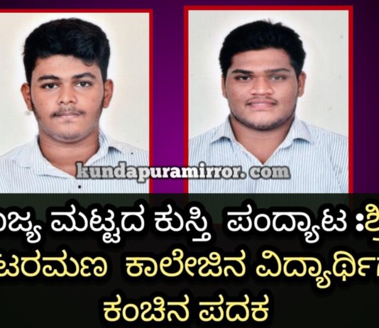 ಕುಂದಾಪುರ :ರಾಜ್ಯ ಮಟ್ಟದ ಕುಸ್ತಿ ಪಂದ್ಯಾಟ :ಶ್ರೀ ವೆಂಕಟರಮಣ ಕಾಲೇಜಿನ ವಿದ್ಯಾರ್ಥಿಗಳಿಗೆ ಕಂಚಿನ ಪದಕ
