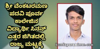 ಕುಂದಾಪುರ :ಶ್ರೀ ವೆಂಕಟರಮಣ ಪದವಿ ಪೂರ್ವ ಕಾಲೇಜಿನ ವಿದ್ಯಾರ್ಥಿ ಸಿನನ್ ಎತ್ತರ ಜಿಗಿತದಲ್ಲಿ ರಾಜ್ಯ ಮಟ್ಟಕ್ಕೆ ಆಯ್ಕೆ