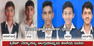 ಕ್ರಿಕೆಟ್: ವಿದ್ಯಾರಣ್ಯ ಆಂಗ್ಲಮಾಧ್ಯಮ ಶಾಲೆಯ ಐವರು ವಿದ್ಯಾರ್ಥಿಗಳು ಜಿಲ್ಲಾ ಮಟ್ಟಕ್ಕೆ ಆಯ್ಕೆ