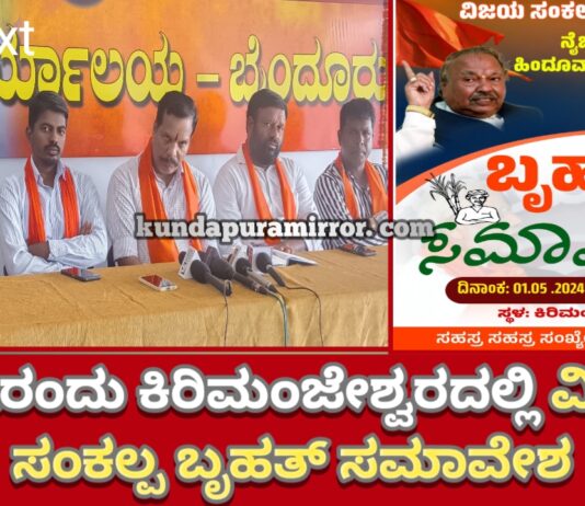 ಬೈಂದೂರು :ಮೇ 1ರಂದು ಕಿರಿಮಂಜೇಶ್ವರದಲ್ಲಿ ವಿಜಯ ಸಂಕಲ್ಪ ಬೃಹತ್ ಸಮಾವೇಶ