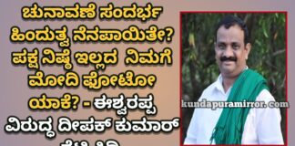 ಬೈಂದೂರು :ಚುನಾವಣೆ ಸಂದರ್ಭ ಹಿಂದುತ್ವ ನೆನಪಾಯಿತೇ? ಪಕ್ಷ ನಿಷ್ಠೆ ಇಲ್ಲದ ನಿಮಗೆ ಮೋದಿ ಫೋಟೋ ಯಾಕೆ? – ಈಶ್ವರಪ್ಪ ವಿರುದ್ಧ...