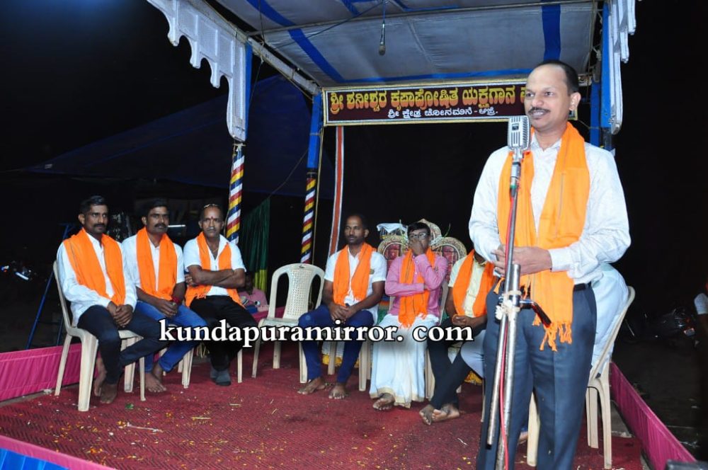 ಶನೀಶ್ವರ ಪ್ರಶಸ್ತಿ ನೀಡುವಲ್ಲಿ ಪ್ರಮುಖ ಪಾತ್ರ ವಹಿಸಿದ ಶನೀಶ್ವರ ಯಕ್ಷಾಭಿಮಾನಿ ಬಳಗದ ಅಧ್ಯಕ್ಷ ಮಂಜುನಾಥ ಶೆಟ್ಟಿ ಜಡ್ಡಿನಮನೆ ಪ್ರಶಸ್ತಿ ಆಯ್ಕೆಯ ವಿವರಣೆ ನೀಡಿದರು.