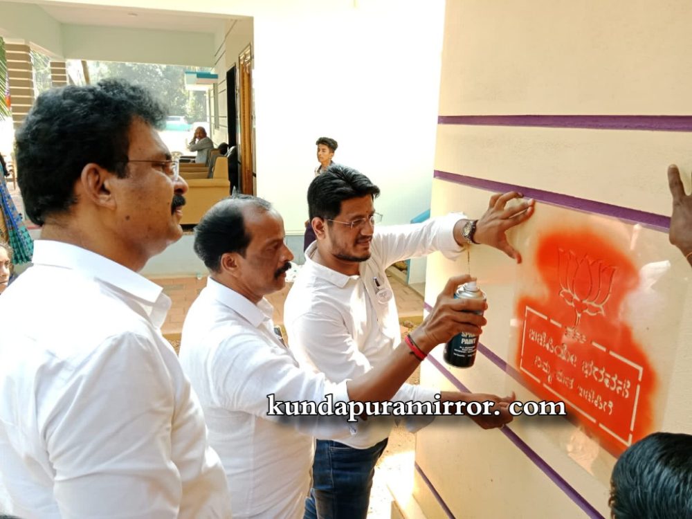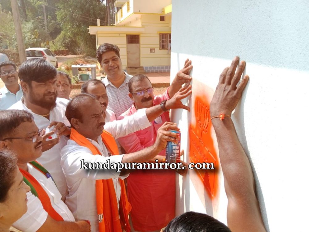 ಕುಂದಾಪುರ: ಕೋಟೇಶ್ವರ ಮಹಾಶಕ್ತಿ ಕೇಂದ್ರ ವ್ಯಾಪ್ತಿಯ ಹಂಗಳೂರು ಬೂತ್ ಸಂಖ್ಯೆ 3ರಲ್ಲಿ ಇಂದು ಪಕ್ಷದ ರಾಜ್ಯ ಪ್ರಧಾನ ಕಾರ್ಯದರ್ಶಿ ರವಿಕುಮಾರ್ ಅವರು ಮಂಡಲ ಅಧ್ಯಕ್ಷ ಶಂಕರ ಅಂಕದಕಟ್ಟೆ ಅವರ ಉಪಸ್ಥಿತಿಯಲ್ಲಿ ಬೂತ್ ಅಧ್ಯಕ್ಷರ ಮನೆಗೆ ಗೋಡೆ ಬರಹ ಹಾಗೂ ಪಕ್ಷದ ಸ್ಟಿಕರ್ ಅಳವಡಿಸುವುದರ ಮೂಲಕ ಚಾಲನೆ ನೀಡಿದರು.