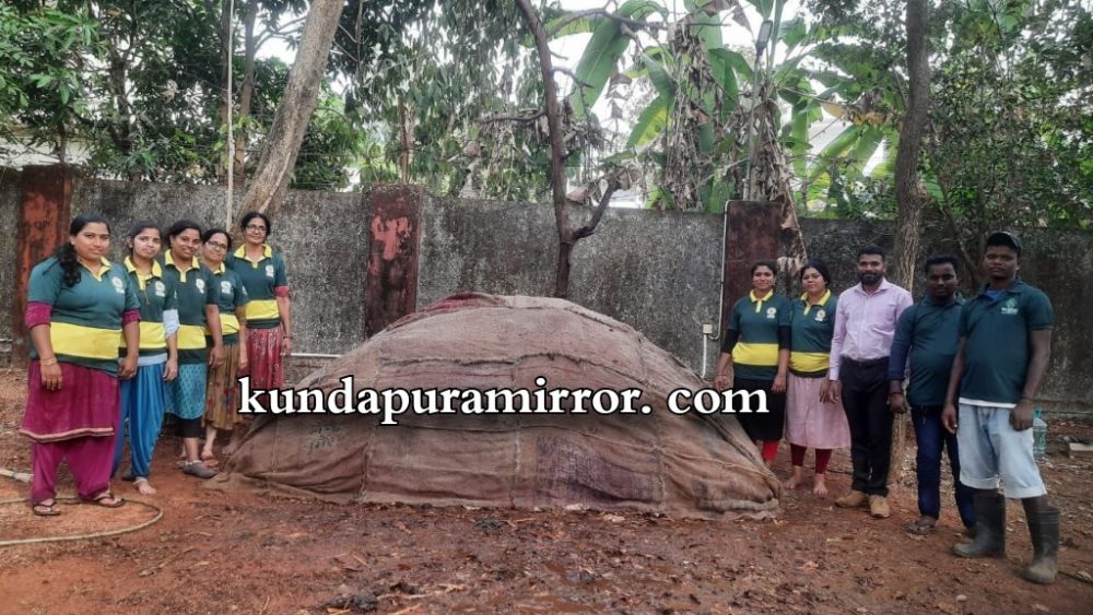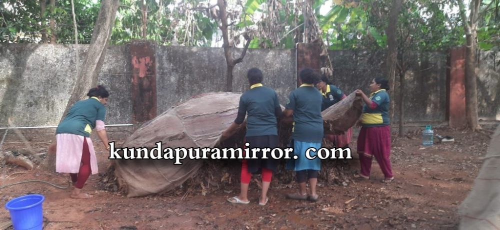 ಕಾಂಪೌಂಡ್ ನಲ್ಲಿ ಸಂಗ್ರಹಿಸಲಾದ ಎಲೆ ಮತ್ತು ಹುಲ್ಲನ್ನು ಸೆಗಣಿಯೊಂದಿಗೆ ಮಿಶ್ರಣ ಮಾಡಿ, 10*6 ಅಳತೆಯ ಬೆಡ್ ಮಾದರಿಯಲ್ಲಿ ಜೋಡಿಸಲಾಗಿದ್ದು,ಗೋಣಿಚೀಲದ ಹೊದಿಕೆ ಹಾಕಲಾಗಿದೆ.ಪ್ರತಿ ದಿನ ದಿನ ಈ ಬೆಡ್ ಮೇಲೆ ನೀರಿನ ಸಿಂಪಡಣೆ ಮಾಡಬೇಕಿದ್ದು, ಇದು 45 ದಿನಗಳ ಬಳಿಕ ಅತ್ಯುತ್ತಮ ಸಾವಯವ ಗೊಬ್ಬರವಾಗಿ ಪರಿವರ್ತನೆಗೊಳ್ಳಲಿದೆ. ಇದನ್ನು ಕೈ ತೋಟದಲ್ಲಿನ ಗಿಡಗಳಿಗೆ ಬಳಸಬಹುದು ಅಥವಾ ಅದೇ ಗೊಬ್ಬರದ ಬೆಡ್ ನಲ್ಲಿ ಬೀಜಗಳನ್ನು ನಡೆಸು ಮೂಲಕ ಗಿಡಗಳನ್ನು ಬೆಳಸಲು ಸಾದ್ಯವಾಗಲಿದೆ. ಎಲ್ಲದಕ್ಕೂ ಮುಖ್ಯವಾಗಿ ಮನೆಯ ಆವರಣವು ಕಸದಿಂದ ಮುಕ್ತವಾಗಿ ಸ್ವಚ್ಛತೆಯಿಂದ ಕಂಗೊಳಿಸಲಿದೆ.