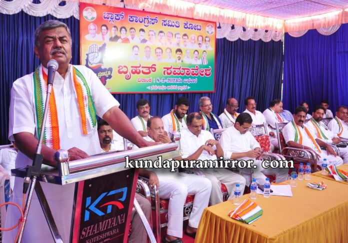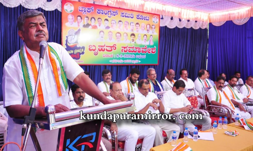 ಕೋಟ ಮಾಂಗಲ್ಯ ಮಂದಿರದಲ್ಲಿ ಕೋಟ ಬ್ಲಾಕ್ ಆಶ್ರಯದಲ್ಲಿ ಹಮ್ಮಿಕೊಂಡ ಕಾಂಗ್ರೆಸ್ ಪ್ರಜಾಧ್ವನಿ ಸಮಾವೇಶದಲ್ಲಿ ಮಾತನಾಡಿ ಪ್ರಸ್ತುತವಿರುವ ಕೇಂದ್ರ ಹಾಗೂ ರಾಜ್ಯದಲ್ಲಿ ಇರುವ ಬಿಜೆಪಿ ಸರಕಾರ ದುರಾಡಳಿತದಿಂದ ಕೂಡಿದ ಸರಕಾರವಾಗಿದೆ ಬಡವರ ರಕ್ತ ಹೀರುತ್ತಿದೆ ಜನಸಾಮಾನ್ಯರ ಸಮಸ್ಯೆ ಆಲಿಸುವಲ್ಲಿ ವಿಫಲವಾಗಿದೆ.