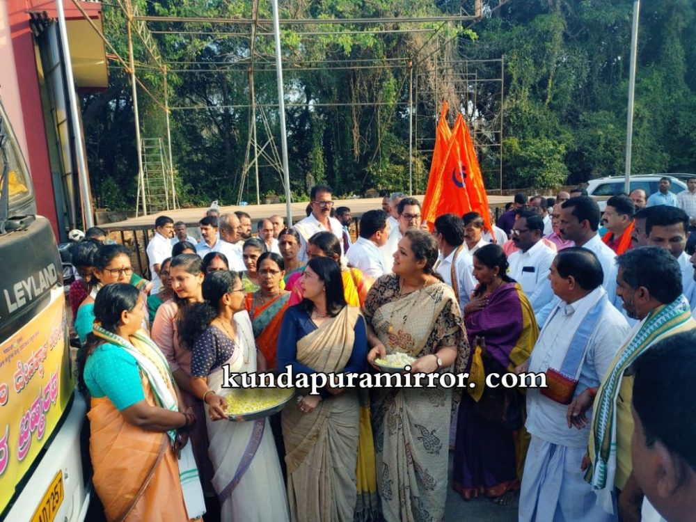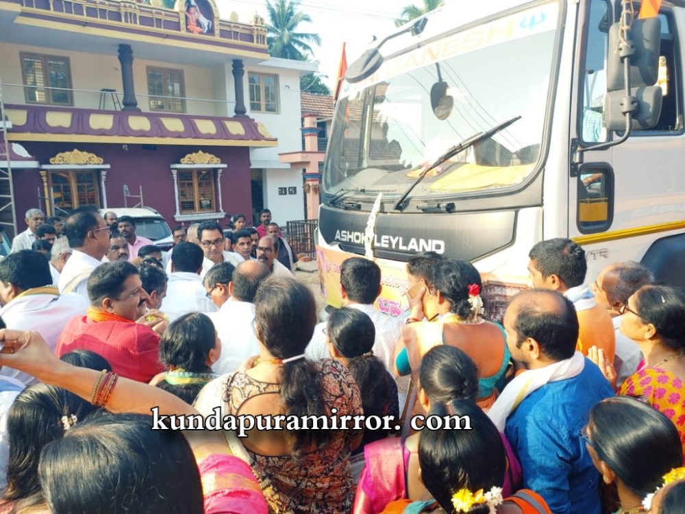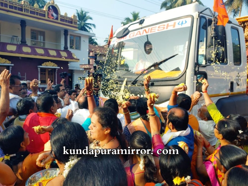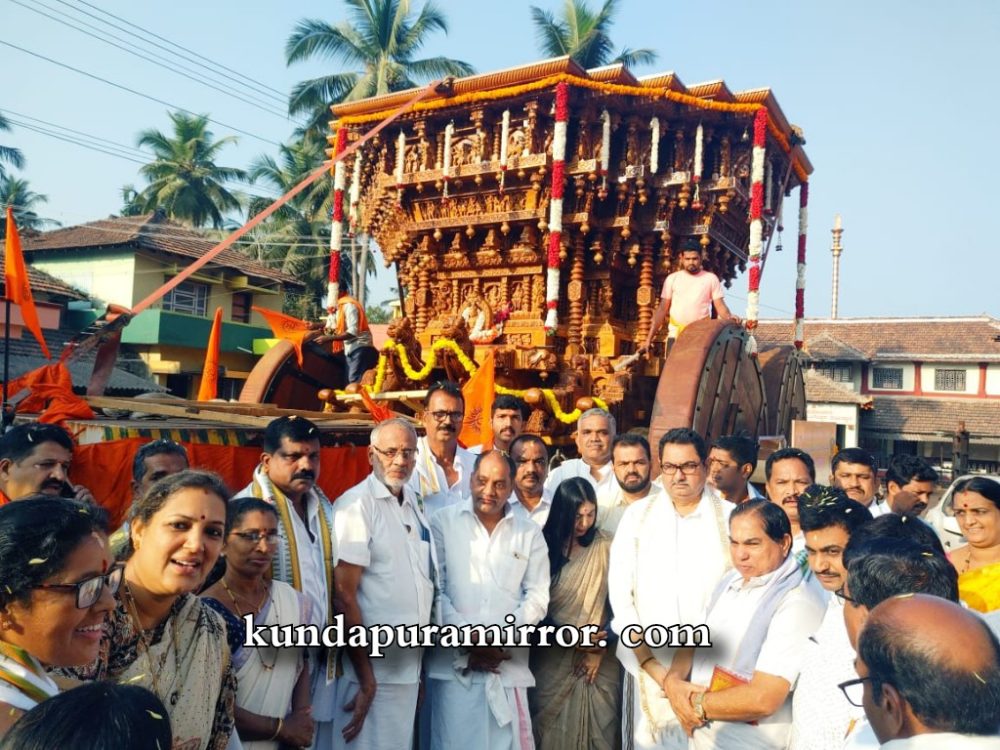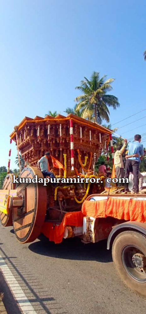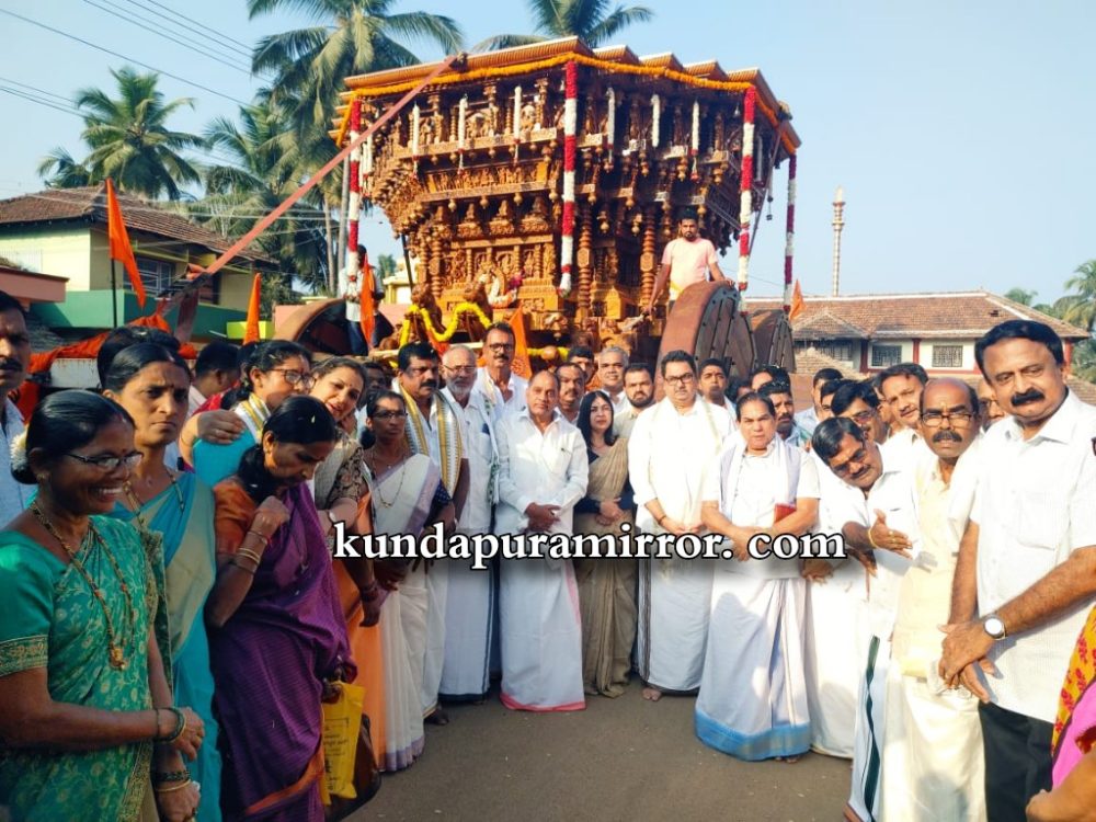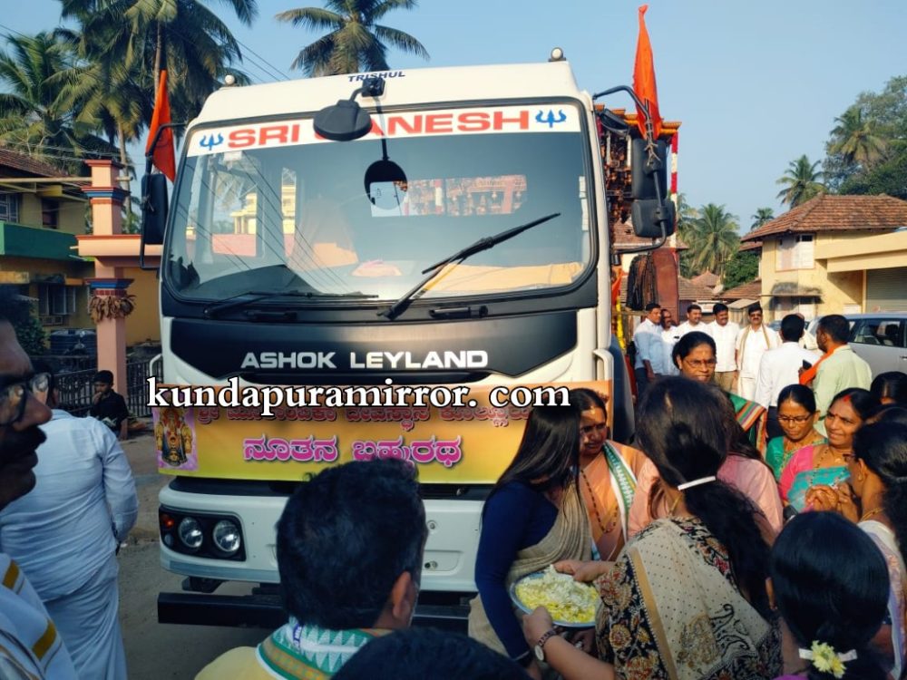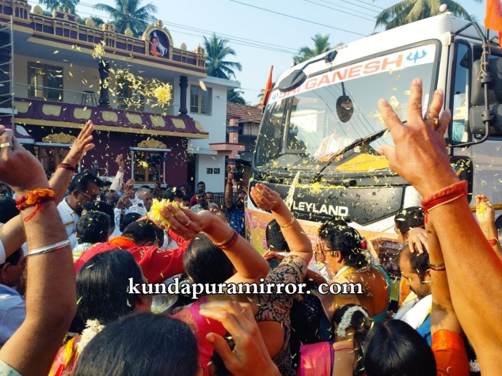 ನೂತನ ಬ್ರಹ್ಮರಥವನ್ನು ಕುಂದಾಪುರ ಮಾರ್ಗದುದ್ದಕ್ಕೂ ದೇವಸ್ಥಾನಗಳ ವತಿಯಿಂದ ವಾದ್ಯಘೋಷ, ಪೂರ್ಣಕುಂಭ ಸ್ವಾಗತದೊಂದಿಗೆ ಬರಮಾಡಿಕೊಳ್ಳಲಾಯಿತು. ರಥಕ್ಕೆ ಪೂಜೆ ಸಲ್ಲಿಸಲಾಯಿತು. ಸಾಕಷ್ಟು ಸಂಖ್ಯೆಯಲ್ಲಿ ಸೇರಿದ ಕುಂದಾಪುರದ ವಿವಿಧ ದೇವಸ್ಥಾನಗಳ ಪ್ರಮುಖರು, ಸಾರ್ವಜನಿಕರು ನೂತನ ರಥಕ್ಕೆ ಹೂ ಸಮರ್ಪಿಸಿದರು.