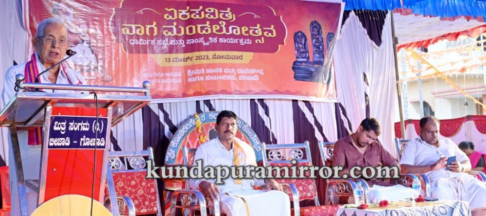 ಶ್ರೀ ವೆಂಕಟಾಚಲಯ್ಯ ಅವಧೂತರ ಆಶೀರ್ವಾದದೊಂದಿಗೆ ಬೀಜಾಡಿ ಶ್ರೀಮತಿ ಜಾನಕಿ ಮತ್ತು ರಾಮಚಂದ್ರ ಹಾಗೂ ಕುಟುಂಬಿಕರ ಮೂಲನಾಗಬನವಾದ ಕುಂದಾಪುರ ತಾಲೂಕು ಬೀಜಾಡಿ ಗ್ರಾಮದ ಮೂಡು ಸರಕಾರಿ ಹಿರಿಯ ಪ್ರಾಥಮಿಕ ಶಾಲೆಯ ಸಮೀಪದ ಕೆಳಬನದಲ್ಲಿ ಸೋಮವಾರ ಜರುಗಿದ ಏಕಪವಿತ್ರ ನಾಗಮಂಡಲೋತ್ಸವದ ಧಾರ್ಮಿಕ ಕಾರ್ಯಕ್ರಮದ ಅಧ್ಯಕ್ಷತೆ ವಹಿಸಿ ಅವರು ಮಾತನಾಡಿದರು.