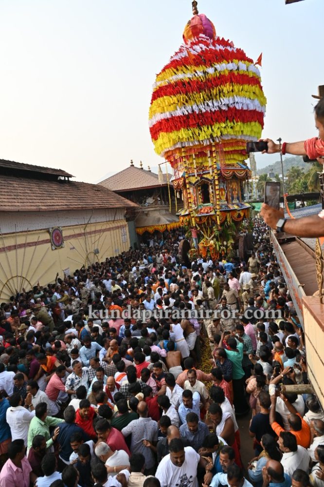 ಕುಂದಾಪುರ : ಪುರಾಣ ಹಾಗೂ ಇತಿಹಾಸ ಪ್ರಸಿದ್ದವಾದ ಕೊಲ್ಲೂರಿನ ಶ್ರೀ ಮೂಕಾಂಬಿಕಾ ದೇವಸ್ಥಾನದ ವೈಭವದ ಶ್ರೀ ಮನ್ಮಹಾರಥೋತ್ಸವ ಬುಧವಾರ ವೈಭವದಿಂದ ಸಂಪನ್ನಗೊಂಡಿತು. ಶ್ರೀ ದೇವಿಯ ವಿಜ್ರಂಭಣೆಯ ಉತ್ಸವಕ್ಕೆ ಆಸು ಪಾಸಿನ ಗ್ರಾಮಗಳಿಂದ, ರಾಜ್ಯದ ವಿವಿಧ ಭಾಗಗಳಿಂದ ಹೊರರಾಜ್ಯದಿಂದ ಹಾಗೂ ವಿದೇಶದಿಂದ ಬಂದಿದ್ದ ದೊಡ್ಡ ಸಂಖ್ಯೆಯ ಭಕ್ತರು ಸಾಕ್ಷಿಗಳಾದರು.