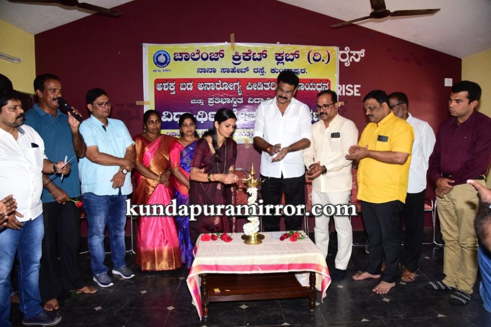 ವಡೇರಹೋಬಳಿ ಸರಕಾರಿ ಶಾಲೆಯಲ್ಲಿ ಹಮ್ಮಿಕೊಂಡ ಕುಂದಾಪುರದ ಚಾಲೆಂಜ್ ಕ್ರಿಕೆಟ್ ಸಂಸ್ಥೆ ನಡೆಸಿದ ರಾಷ್ಟ್ರಮಟ್ಟದ ಹೊನಲು ಬೆಳಕಿನ ಕ್ರೀಡಾಕೂಟದಲ್ಲಿ ಉಳಿಕೆಯಾದ ಹಣವನ್ನು 30 ಜನ ಅನಾರೋಗ್ಯ ಪೀಡಿತರಿಗೆ ಹಾಗೂ 25 ಜನ ಪ್ರತಿಭಾನ್ವಿತ ಬಡ ವಿದ್ಯಾರ್ಥಿಗಳಿಗೆ ಸಹಾಯಧನ ವಿತರಣೆ ಕಾರ್ಯಕ್ರಮವನ್ನು ಉದ್ಘಾಟಿಸಿ ಮಾತನಾಡಿದರು.