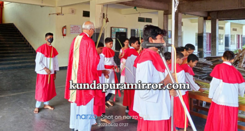ಕುಂದಾಪುರ: ಇಲ್ಲಿನ ಸಂತ ಫಿಲಿಪ್ ನೇರಿ ಚರ್ಚ್ನಲ್ಲಿ ಶುಭ ಶುಕ್ರವಾರದ ಹಿಂದಿನ ರವಿವಾರ ’ಗರಿಗಳ ರವಿವಾರ’ (ಪಾಮ್ ಸಂಡೇ) ಶ್ರದ್ಧಾ ಭಕ್ತಿಯಿಂದ ಆಚರಿಸಲಾಯಿತು.