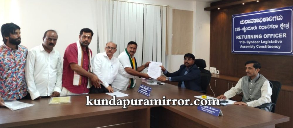 ಬೈಂದೂರು :ಬೈಂದೂರು ವಿಧಾನಸಭಾ ಕ್ಷೇತ್ರದ ಚುನಾವಣೆಗೆ ಬೈಂದೂರು ಜೆಡಿಎಸ್ ಅಭ್ಯರ್ಥಿ ಮನ್ಸೂರ್ ಇಬ್ರಾಹಿಂ ನಾಮಪತ್ರ ಸಲ್ಲಿಸಿದರು. ಚುನಾವಣಾಧಿಕಾರಿ ಜಗದೀಶ ಗಂಗಣ್ಣನವರ್ ನಾಮಪತ್ರ ಸ್ವೀಕರಿಸಿದರು.