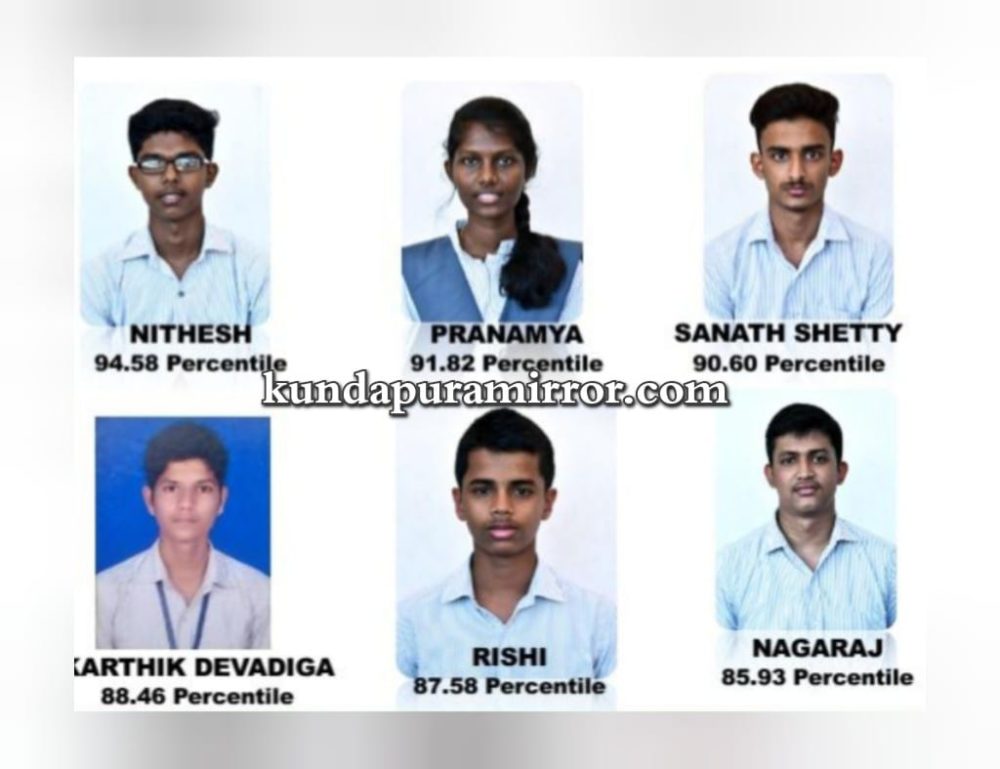 ಪರ್ಸೆಂಟೈಲ್, ಸನತ್ 90.60 ಪರ್ಸೆಂಟೈಲ್, ಕಾರ್ತಿಕ್ 88.46 ಪರ್ಸೆಂಟೈಲ್, ರಿಷಿ 87.58 ಪರ್ಸೆಂಟೈಲ್, ನಾಗರಾಜ್ 85.93 ಪರ್ಸೆಂಟೈಲ್ ಗಳಿಸಿರುತ್ತಾರೆ.